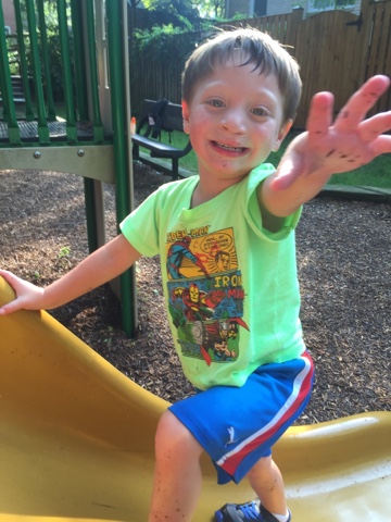 Kira and mommy had a dermatologist appointment this morning. Kira was her usually smiley self, and the doctor confirmed what all the other doctors said- the mark is harmless and will go away. Max insisted on tagging along to the appointment. He is very concerned about Kira's "mark". He also wanted to ask the doctor about all of his bug bites. "The bugs are eating me," he sometimes says. Unfortunately when we left the doctor, Max was disappointed. "Her mark is still there!"