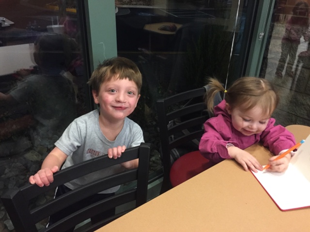 Santa was on a break when we got to the mall, which was excellent, because daddy and pa waited in the number one spot while Max and Kira rode the train.